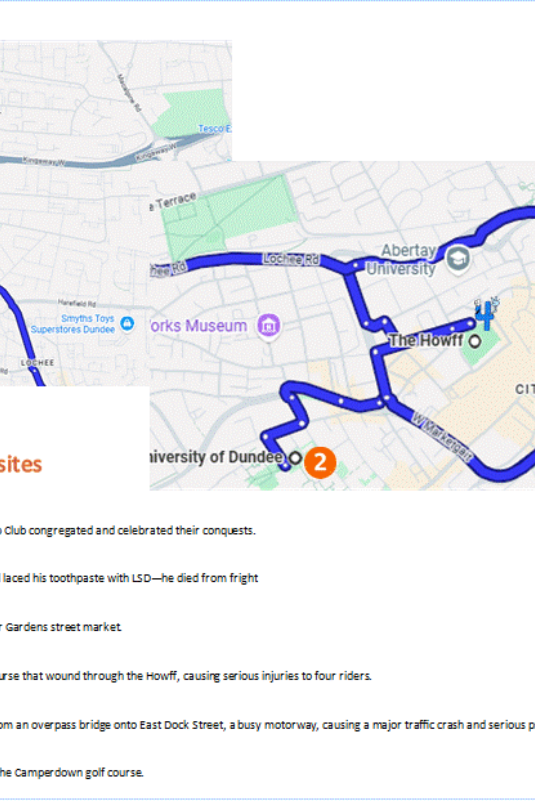 Day 1 (Dundee Start) Begin your journey in Dundee, following key locations from the story. From the University to Tayside Police Station, each stop brings the investigation to life. Enjoy interactive moments along the way, including local cafés and hidden story clues.